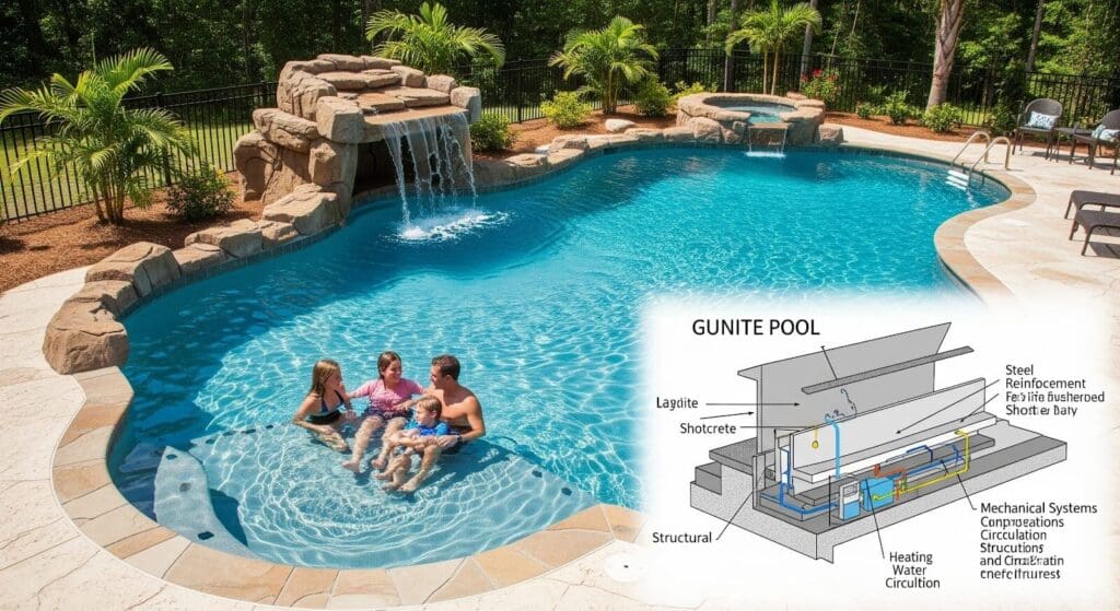 When you’re investing in a pool that will serve your family for decades, the construction method matters. While marketing materials for other pool types may promise easy installation and lower costs, the reality is that gunite construction offers advantages that simply can’t be matched by fiberglass or vinyl alternatives—especially in South Carolina’s challenging climate and soil conditions.